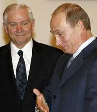 El secretario de Defensa estadunidense, Robert Gates, y el presidente ruso, Vladimir Putin, durante su encuentro ayer en Moscú