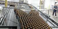 Botellas de la cerveza Budweiser a punto de ser empacadas en la planta de St. Louis, sede de la compañía Anheuser-Busch, de la cual se espera su reporte de ganancias