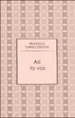 Así la voz, de Francisco Torres Córdova (Conaculta, 2006), es, como su título lo revela, la manifestación de esa búsqueda. Si algo la caracteriza no es la tarea de decir lo que un mundo atomizado quiere decir –tarea imposible–, sino la de nombrar al mundo en su más pura elementalidad: el pasaje y la mujer. En Así la voz, no hay un lugar de referencia, porque la tribu ha dejado de existir; no hay tampoco un nombre de mujer, porque la amada en nuestro mundo se ha multiplicado en una infinidad de imágenes eróticas. Hay sólo la elementalidad que los hace posibles, el espacio que sólo puebla la voz y que al nombrar el principio permite la aparición de lo humano. Como si imitara al Dios creador, Francisco Torres, revive en pequeño el acto divino por el que el mundo vuelve a hacerse –"Viene de lejos. En la quietud trenzada por el tiempo, su peso y contorno de animal agitan las ramas del silencio; su calor avanza y toca la piel, la bautiza, la rasga o la florece, si es verdad, siempre desde adentro [...]"–, y al revivirlo rememora, no a la tribu, sino el lugar de su posibilidad.