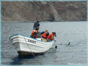 Finalmente, y con mucho, pero mucho trabajo, lograron subirla a la jaula-cuna. Le pusieron la toalla en los ojos, pero no quedó muy bien, así que Leonardo se agachó a acomodarla pero como el barco se bamboleó, Leonardo se cayó. Rodó sobre la cabeza de ella y finalmente fue a dar al agua; todos nos asustamos, pero él estaba bien y se subió a una balsa que estaba ar un lado de la jaula. Se marcó el bello ejemplar, se midió y se liberó, lo que también costó mucho trabajo. Pero lo hicimos: habíamos capturado y marcado al primero. Yo estaba muy, pero muy emocionado, pero los demás no lo estaban tanto porque les preocupaba muchísimo la salud de ella, ya que duró mucho tiempo fuera del agua y ese estrés es muy peligroso. Hasta que vimos el video submarino, nos dimos cuenta que ella estaba bien, y fue entonces cuando todos gritamos alegres... Comprendí lo frágiles que pueden ser estos organismos y la verdadera razón del por qué debemos cuidarlos. Al día siguiente, después de desayunar, fuimos en la panga y nos anclamos cerca de la costa. Nos avisaron por el radio que había un tiburón de menor talla y nos dirigimos hacia el barco. No lo vimos, pero nos mantuvimos cerca del barco. Avistamos dos tiburones grandes (alrededor de los 5 metros de largo), pero no las capturamos porque eran demasiado grandes. Estuvimos buscando ejemplares un poco más pequeños porque es más fácil meterlos a la jaula-cuna y se estresan menos, pero no hubo ninguno. El último día de trabajo en la isla nos levantamos más temprano de lo normal. Nos subimos a la panga y nos alejamos del barco. Desde esa nave, dos veces vieron tiburón pero sólo a lo lejos. Después, nos quedamos cerca del barco y en los dos avistamientos soltamos toda la carnada que teníamos sólo tres horas más de trabajo y había que regresar. Se acercaron dos o tres veces, pero no lo suficiente como para que pudiéramos capturarlos; apenas pudimos verlos a la distancia o con la cámara acuática. Se acabó, ya no hay tiempo para intentar, ni carnada para atraer , se acabó la aventura. Solo hay tiempo para empacar y luego, vámonos de regreso a tierra firme. Llegamos el jueves 19 ya casi oscureciendo al puerto de Ensenada. Hasta ayer, cinco días después de que regresamos, caí en la cuenta de que ya habíamos terminado el trabajo de campo que la aventura marina había terminado ¿o no?
