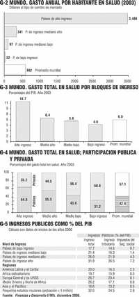 Finanzas y Desarrollo, la revista trimestral del Fondo Monetario Internacional publicó en su edición de diciembre de 2006 un artículo con el peculiar titulo de "Hablemos en serio del financiamiento de la salud". Si bien el texto aborda primordialmente el tema de la asistencia internacional para el rubro, sus estadísticas relativas al gasto mundial en sanidad por regiones y grupos de ingreso dan base a este Reporte.