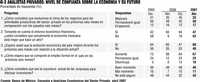 A la pregunta ¿considera que la economía está mejor que hace un año?, en diciembre 84% de las respuestas fueron sí, y en abril sólo 47%; a la pregunta ¿espera usted que la economía mejore en los próximos seis meses?, en diciembre 47% respondió sí, y en abril 60%; a la pregunta ¿cómo considera la coyuntura actual de las empresas para efectuar inversiones?, en diciembre consideraba que era buen momento para invertir 58%, y en abril sólo lo consideran así 46%.