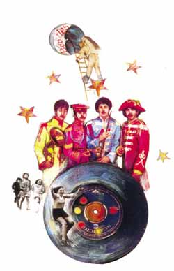 Piel de su sustancia, qué mejor que la histórica portada de Peter Blake (por mediación de Robert Fraser), artista pop predecesor de Andy Warhol quien, por un pago de doscientas libras, propone un collage de personalidades entre las que destacan Bob Dylan, Stockhausen, Freud, Allan Poe, Wilde, Marx y Marlon Brando. Además, incluye un montón de elementos decorativos ante los cuales no han cesado las interpretaciones: figuras de cera de los músicos como alegoría de una muerte en la que quedan enterradas sus antiguas y adolescentes pretensiones, una muñeca con un mensaje a sus camaradas los Rolling Stones, flores, trajes militares sicodélicos, bigotes y pelo largo como un deseo de transformación y madurez.