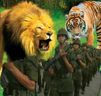 La participación del ejército en la lucha contra el narco, asunto delicado que requiere de inteligencia especializada, debe ser suspendida de inmediato. Todo esto me recuerda una historia de estos días: la del infortunado velador que, en Iztapalapa, daba de comer a un tigre y a un león que estaban en la azotea de la fábrica, dizque "para cuidar la propiedad".