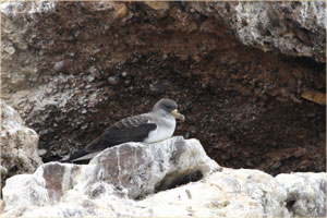 Pardela de Cory. Las pardelas y petreles (familia Procellariidae) son de las aves más pelágicas que existen. Sólo están en tierra en los sitios de anidamiento. Los Procelariformes mexicanos no son la excepción, con dos especies anidando en las islas del Pacífico y otras 19 ocurriendo casi sólo como visitantes oceánicos. Había sólo un registro de Calocenris diomedea (pardela de Cory) para México antes de que los biólogos descubrieran a este individuo en las islas Los Coronados, Baja California, en 2005. Perdida en el océano incorrecto -ésta es un especie nativa del Atlántico oriental-, esta ave ha preparado un nido y busca compañía de la misma especie. La "nariz de tubo" en la base del pico -característica de esta familia y los albatros, los petreles y los paiños (el orden Procellariformes)- se muestra claramente en esta fotografía del ave solitaria cerca de su nido Foto: Matt Sadowski |