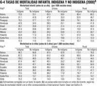 Al interior de los países es asímismo patente la desigualdad que afecta a la niñez indígena. En México esta tasa de mortalidad infantil es de 43 por mil en la población indígena y de 26.5 por mil en la no indígena, y la tasa de mortalidad en la niñez (antes de cinco años) es de 63.8 fallecimientos por cada mil en la población indígena y de 36.2 en la no indígena (Gráfico 4).