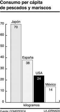 Ello beneficiaría la salud de la población y se comerían pescados y mariscos tres veces a la semana. Otros países aprovechan estos recursos: Japón, 70 kilogramos; España, 38; Estados Unidos, 24.