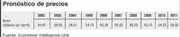 Economist Intelligence Unit prevé que el precio promedio del crudo tipo Brent será de 65 dólares por barril en 2007 y de 60 dólares en 2008. La persistencia de una alta demanda, una política agresiva de la Organización de Países Exportadores de Petróleo (OPEP) para mantener las cotizaciones elevadas -inclusive mediante recortes a la producción- y una elevada prima de riesgo geopolítico favorecerán esta tendencia.