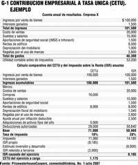 En la propuesta del gobierno federal se define: "La Contribu-ción Empresarial a Tasa Unica (CETU) grava los ingresos por venta y renta de bienes y por la prestación de servicios indepe-ndientes; será pagada por las empresas y las personas físicas con actividad empresarial; y actuará como un impuesto de control para el ISR, gravando con una tasa de 19% (el primer año es de 16%) los ingresos después de deducir la inversión y la adquisición o renta de los bienes y servicios independientes utilizados para generar esos ingresos (...) La contribución es general, evitando exenciones distorsionantes; (y) es simple al aplicar una tasa única a una base de cálculo sencilla..."