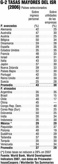 Como puede verse, sin dejar de ser "competitivo", México puede aumentar sustancialmente su captación vía ISR elevando sus tasas máximas, diferenciándolas para alentar la inversión, y cerrando las múltiples rendijas que hoy facilitan la evasión y la elusión.