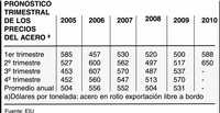 Tras la aceleración del primer cuatrimestre de 2007, los precios globales del acero se estancaron en el segundo cuatrimestre con pequeñas ganancias en el precio tanto en Europa como en Asia. El pronóstico de EIU para el tercer cuatrimestre es que habrá mayor divergencia regional, con buenas posibilidades de que se mejoren los precios en Estados Unidos. En Asia y los mercados emergentes bajarán y en Europa se mantendrán estables. En el último trimestre el crecimiento de la demanda en China y otros mercados podría hacer que desciendan los precios globales, tendencia que continuará en 2008. Más adelante, la sobreoferta global mantendrá los costos y los márgenes de ganancia de la industria corporativa del acero a niveles relativamente bajos en 2009, aunque el precio será mucho más alto que los precios pico alcanzados en el periodo 1998-2003.