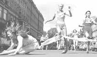 Esto empieza y termina con la foto de una escena muy triste: una docena de muchachas trastabillean mientras corren, o se van de boca al duro suelo, o están a punto de, con caras de angustia y dolor, afanadas por llegar a un listón rosado que representa la meta de una carrera. La información detrás de la imagen es simple: "Más de 100 mujeres participaron en una carrera de alto riesgo en las calles de San Petersburgo. Calzadas con tacones de nueve centímetros como mínimo -única condición para participar en el singular evento-, arriesgaron sus piernas y sus tobillos para intentar ser las primeras en cruzar la meta. ¿El premio? Un vale de compra de unos 2 mil dólares".