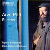 Entre las distintas nuevas grabaciones, que no necesariamente contiene partituras de estreno sino versiones distintas, siempre con nuevos intérpretes y además grabaciones de las partituras que Arvo Pärt ha revisitado él mismo, reorquestándolas y presentando así obras nuevas, retrabajadas, pulidas al máximo, destaquemos ahora el álbum titulado Summa (BIS digital), que contiene esa obra y otras cinco más a cargo de la Tapiola Sinfonietta, dirigida por Jean-Jacques Kantorow, y cuyo denominador común es la etapa culminante de la producción partiana, caracterizada por el uso magistral del recurso técnico/expresivo de su invención, bautizado por él mismo como efecto tintinabulli, que consiste en la repetición (sin ser música minimalista) de tríadas de notas que hacen eco del efecto de campanas y que introducen al escucha a estados de gracia, auténticas sesiones de hipnosis en vigilia que proporcionan una tranquilidad de alma y una potencia de espíritu que resultan inigualables, inimaginables, infinitos.