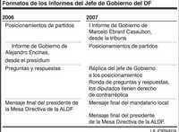 De acuerdo con el formato aprobado, el jefe de Gobierno dispondrá de 30 minutos para rendir su primer informe desde la tribuna; seguirán los posicionamientos de los partidos, cada uno por 10 minutos. El Ejecutivo tendrá 10 minutos para hacer una réplica a éstos, luego vendrá una ronda de preguntas, que responderá el mandatario al término de cada una, mientras que el legislador podrá hacer una contrarréplica.