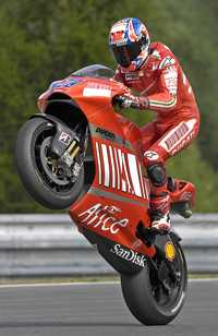 Stoner, inalcanzable para Valentino RossiEl australiano Casey Stoner (Ducati) se impuso en el Gran Premio de la República Checa. Stoner cuenta ya con una abismal ventaja de 60 puntos sobre el italiano Valentino Rossi. |
