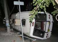 El hecho ocurrió el domingo por la noche, en avenida Prosperidad y Calle 3, colonia Pantitlán, delegación Iztacalco, cuando la unidad 140, que va del Metro Pantitlan a Chimalhuacan, placas Y97747, del estado de México, conducida por Fernando Barrera Avila, de 24 años de edad, se volcó sobre su costado derecho al tomar a gran velocidad una curva y se proyectó contra un poste de luz.