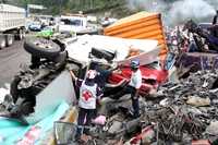 Los elementos de rescate tardaron más de cinco horas en recuperar los cuerpos de las personas que murieron por la volcadura del tráiler, debido a lo pesado de la unidad y a la zona donde ocurrió el accidente