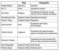 Hay una enorme distancia entre la Helena de Troya, la Julieta de Romeo y la Ofelia de Hamlet con las mujeres célebres de nuestro nuevo siglo. Aquéllas ganaron la fama por el camino del amor y la belleza, en cambio, las de hoy transitan por el del dinero y el poder. Compiten con los hombres palmo a palmo. En la lista de las cien mujeres más poderosas del mundo que acaba de publicar la revista Forbes aparecen casi exclusivamente jefas de Estado y grandes empresarias. Por cierto, ninguna es mexicana. No figuran la miss Elba Esther, ni la secretaria de Educación Pública, Josefina Vázquez Mota, ni la multimillonaria empresaria y esposa del embajador de Estados Unidos, Marisun Aramburuzabala, ni las gobernadoras de Zacatecas y Yucatán, Amalia García e Ivonne Ortega, tampoco la presidenta del Congreso, Ruth Zavaleta (está viviendo sus 10 minutos de gloria), y mucho menos la jefa del cártel de San Cristóbal, Marta Sahagún. ¿Se imaginan lo que esta ambiciosa mujer –que acunó el sueño calenturiento de convertirse en presidenta– daría porque se le incluyera en la lista? Pero no, los editores fueron muy cuidadosos, no podría decirse que alguna de las cien tenga los antecedentes de la señora Marta. En la gráfica aparecen las 10 mujeres que encabezan la lista.