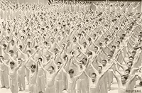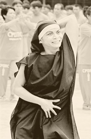 Los internos del CPDRC tienen ya un repertorio de doce coreografías, están Radio Gaga , de Queen; I Will Follow Him , del film Cambio de hábito ; y Algorithm March , de un programa infantil japonés. La selección musical es del propio director, quien escogió In the Navy y ymca , de Village People, para animar a quienes mostraban problemas de machismo –ignorando lo significativas que son estas rolas para la comunidad gay. García inició este programa cuando se percató de que eran pocos los que asistían al acondicionamiento físico, a las calistenias, “lagartijas” y abdominales, que ofrecía el Centro. En su lugar, se empezó a marchar con música y de ahí se pasó a la danza.
