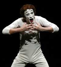 Dos momentos de Monsieur Bip, personaje creado por Marcel Marceau. Arriba, durante una presentación en el Centro Cultural Belem, en Lisboa, Portugal, y abajo, en una actuación en la Universidad de California en Los Ángeles, en 1983