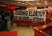 Mexicali, BC, 1º de octubre. Legisladores priístas se apoderaron de la tribuna del Congreso local e impidieron que el gobernador panista Eugenio Elorduy Walther presentara su sexto y último informe de actividades. El recinto parlamentario quedó prácticamente sitiado por integrantes de la marea roja (activistas del Partido Revolucionario Institucional), quienes exigieron que el Tribunal Electoral del Poder Judicial de la Federación (TEPJF) anule las elecciones de gobernador celebradas el 5 de agosto.