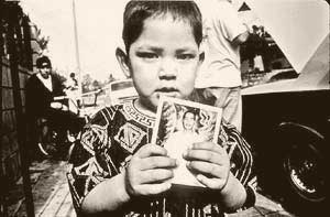 Mike Estrada, de cuatro años, sostiene una fotografía de su padre en prisión. Boyle Heights, 1993 Foto: Joseph Rodríguez/ ZoneZero |