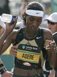 Chicago. El keniata Patrick Ivuti y la etiope Berhane Adere (en la foto) ganaron el maratón de Chicago, que se corrió bajo un intenso calor, que provocó la muerte de un corredor de 35 años y la hospitalización de más de 300 maratonistas. La competencia fue suspendida tres horas y media después de que inicio para no arriesgar a quienes aún no terminaban. La triunfadora Adere también se colapsó al cruzar la meta por deshidratación