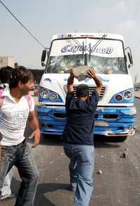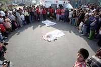 Al menos 300 personas de las colonias Jaltipac, Unión de Guadalupe y Nueva Guadalupe recorrieron más de dos kilómetros para apedrear todos los autobuses del transporte público que les salieron al paso. En la primera imagen se muestra el cuerpo de Juana Salas Ruiz