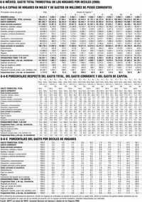 Siguiendo los resultados de la Encuesta Nacional de Ingresos y Gastos de los Hogares (ENI-GH) 2006, en el trimestre de levantamiento dicho gasto ascendió a 956 mil 573 millones de pesos (Gráfico 6-A), cifra ligeramente superior a la del ingreso (954 mil 291 millones).