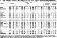 En su más reciente actualización de Perspectivas de la Economía Mundial, del pasado mes de octubre, el Fondo Monetario Internacional (FMI) mantiene su pronóstico anterior (julio) de que la economía mundial crecerá este año 5.2%, aunque para 2008 reduce en cuatro décimas su proyección, para ubicarla en 4.8% (Gráfico 1).