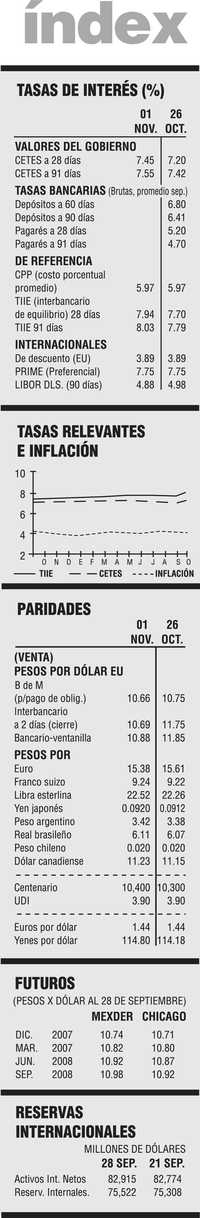 Crecimiento del PIB en 2007: gobierno 3.0%, privados 3.1%, B de M 3.2%; para 2008 gobierno 3.7, privados 3.4 y B de M 3.25-3.75%.