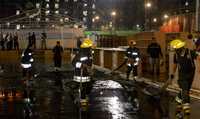 Tras la lluvia de ayer, bomberos capitalinos drenaron el agua acumulada sobre la pista de hielo del Zócalo. Horas antes, los 33 elementos de la SSP-DF y del ERUM que vigilarán y atenderán a los asistentes hicieron un paseo de reconocimiento sobre la superficie helada