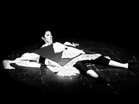 Había una vez… está dividido en tres escenas que se anuncian también como eclécticas clasificaciones; la primera, Danza mística-apocalíptica, es una ácida e hilarante crítica a la religiosidad soft o light que se reproduce en las sociedades de consumo implementadas por el neoliberalismo. Dos mujeres que profesan alguna religión oriental se enfrentan por las diferencias en sus concepciones del culto; una se apega a los cánones originales, mientras que la otra se inserta en la variante mercantil y epidérmica, que se sintetiza de manera genial cuando el personaje de Romero se marca el tercer ojo con condimento extraído de una bolsa de frituras. Se incorpora entonces Díaz, quien es el mismo personaje con diferentes advocaciones a lo largo de la obra, y que recurrentemente será objeto de la seducción-opresión de la Sufí- Amadecasa flamenca-Alicia revisitada-Amante obsesionada interpretadas por Romero. El impulso paródico no para en momento alguno. Un concierto para violín de Bach es el fondo musical para que una mujer con delantal, paliacate en la cabeza y escoba, barra el escenario; la Carmen, de Bizet, da paso a un paso doble y a una carrera de caballos con travesti incluido; el Claro de luna, de Chopin, se traduce en guitarra eléctrica. Se reproduce en todas las escenas un intenso hostigamiento sexual e intelectual que intenta someter al personaje de Díaz, quien no acierta a comprender qué pasa o por qué es él el objeto de deseo –duda que permanece también en los espectadores. La violencia ejercida contra el personaje de Díaz y el gozo que esto propicia están admirablemente utilizadas y hacen de Había una vez… una pieza fársica, a la vez que paródica.