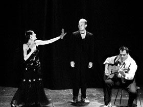 Romero orquesta junto a Jesús Díaz una puesta en escena descrita en el programa de mano como “de danza clownesca musical”. La combinación de géneros en el espectáculo, sin embargo, aparece como una lograda fusión de disciplinas, en la que participan también Nohemí Espinoza, Alex Daniels “Basasa” y Jhovatan Lozano. Lo genérico, las clasificaciones, son justamente las que están en cuestionamiento desde una óptica claramente enraizada en las estéticas postmodernas y en los efectos de la globalización. Presentar a los intérpretes como “la bailarina, el clown, la actriz que canta, el acordeonista y el guitarrista”, habla de una constante que se repetirá a lo largo de la representación y que mina las categorías, casi absolutas, con que se suele etiquetar las profesiones escénicas, pues todos bailan, actúan y musicalizan.