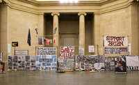 Recrea las pancartas y fotografías colocadas por Brian Haw en la Plaza del Parlamento que desmanteló la policía londinense