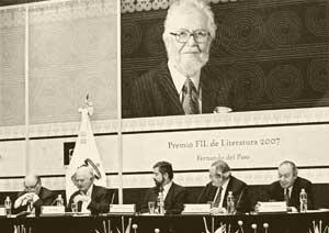 Pero es sólo en la Feria , hermosa y humana a su modo, que podemos sumarnos al regocijo de ver, verbigracia, a don Fernando Del Paso pasarse por triunfal y no tan metafórico arco las colegatarias pretensiones de los herederos y leguleyos que porfían en hacer del talento, del talante, de la obra y el pensamiento de una de las más laberínticas inteligencias mexicanas y universales como fue Juan Rulfo su propia marca personal de agendas, calzado, galletas, artesanías o lo que sea para lo que se quiere meter su nombre a la congeladora y disociarlo, según parece, de lo que fue uno de sus más grandes motivos para existir: la literatura. Es sólo en la Feria que podemos reunirnos a escuchar las emocionadas palabras que a veces se convierten en ignívomas arengas del mismo Del Paso, de Carlos Fuentes, de Ernesto De la Peña este año como en años anteriores hemos podido abrevar de la palabra viva de José Saramago, de Enrique Vila Matas, de Ernesto Cardenal, de Hugo Gutiérrez Vega o reír con las ocurrencias, la cuidadosa antisolemnidad de Guillermo García Oropeza, Xavier Velasco, David Toscana, Guillermo Fadanelli, Armando Vega Gil. Sólo en la FIL podemos ser partícipes de laureles ajenos como los que este año coronan, además de a Del Paso, a Élmer Mendoza, Christian Bourgois, don Ernesto De la Torre o Tununa Mercado…
