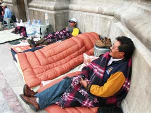 Por eso hemos llegado hasta este Ángel de la Independencia organizaciones campesinas, ambientalistas, sociales, sindicales, de derechos humanos y urbanas, así como científicos, intelectuales, artistas y ciudadanos de a pie, todos firmantes de la Campaña Nacional en Defensa de la Soberanía Alimentaria y la Reactivación del Campo Mexicano. Sin Maíz no hay País y sin Frijol Tampoco. ¡Pon a México en tu Boca!, para iniciar este ayuno y alzar nuestras voces, una vez más, en contra del TLCAN. Con el apoyo de la ciudadanía queremos aumentar la resistencia y defender nuestra independencia alimentaria. Nuestras principales propuestas y demandas incluyen sacar al maíz y al frijol del TLCAN, y que el Congreso de la Unión mandate un mecanismo permanente de administración de las importaciones y exportaciones de estos dos granos. Asimismo, prohibir la siembra de maíz transgénico en México y luchar contra los monopolios agroalimentarios, para evitar acaparamiento y especulación. También demandamos que la Cámara de Diputados apruebe el Derecho Constitucional a la Alimentación y que el Senado de la República vote ya favorablemente la Ley de Planeación para la Soberanía y Seguridad Agroalimentaria y Nutricional.