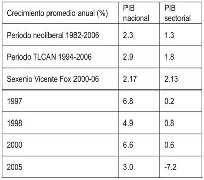 Con el gobierno de Fox se consolidó la política neoliberal de estancamiento estabilizador. El sector agropecuario ha sido desenchufado de la economía nacional.
