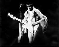 Otra noche, miles y miles de noches después, otro poeta, Johny James Jimi Hendrix, caminó también hacia el centro del lago, pero esta vez prendió fuego y tuvo entre sus brazos a la misma sirena, ésta sí con piernas y de sus muslos escurrían las gotas calcinadas que eran solfas, corcheas, anacrusas y en medio de ellas, en el éxtasis amoroso, Juanito Jaime Yimi entonó uno de los versos que lo consagraron como poeta. Alzó a la sirena en sus brazos, la hizo soltar un gemido de placer orgásmico y se dirigió al público, respetuoso y elegante: “Permítanme/ voy a besar el cielo” (Excuse me/ while I kiss the sky) y tituló a ese lago, a esa noche y a esa sirena con un nombre sereno: Purple Haze.