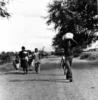 “En Dolores Hidalgo me encuentro con una familia, está la niñita, el angelito muerto. Le pido permiso al señor (el padre) para fotografiar el ritual, me dice que sí. Va por el cementerio (con el féretro) y lo sigo, hasta que nos encontramos a la muerte (un cadáver masculino vestido, cuyo torso ha sido devorado). La familia entierra a la niña, después, levantan el vuelo los miles de pájaros que se comieron a la muerte.”