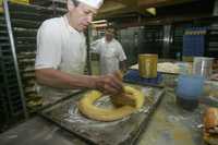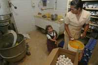 Aquí se elaboraron 200 tramos de los 400 que el grupo panadero aportará a la rosca que el Gobierno del Distrito Federal pretende inscribir en el libro de los récord Guinness. Concentrado en la producción de las roscas del 5 y el 6 de enero –los tramos para la llamada rosca del Bicentenario estuvieron listos desde el viernes, debidamente emplayados y empaquetados para su mejor conservación–, Agustín Gutiérrez explica que una vez elaborada la masa con los ingredientes básicos, como es harina de trigo, mantequilla, huevo, levadura, sal y azúcar, entre otros, se mete en charolas a una cámara de fermentación entre una hora y 40 minutos, dependiendo de la levadura.