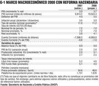 Según el gobierno federal, una vez aprobada la reforma fiscal que presentó al Congreso, la economía mexicana crecerá al vertiginoso ritmo de 3.7% en 2008, controlará la inflación en 3%, y el déficit externo en cuenta corriente se ubicará en -8 mil 960 millones de dólares, considerando una exportación promedio de petróleo de 1 millón 678 mil barriles diarios, a un precio promedio de 46.6 dólares por barril (Gráfico 1).