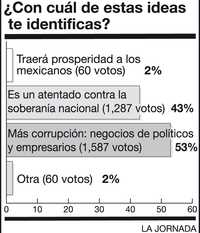 La administración calderonista se prepara a relanzar la iniciativa de modificar el marco legal con la finalidad última de privatizar el sector energético. Al parecer, el panismo cuenta ya con el apoyo de un decisivo número de legisladores priístas en ambas cámaras del Congreso. Sin embargo, muy pocos mexicanos (2 por ciento) consideran que la privatización de Pemex y la Comisión Federal de Electricidad (CFE) se traduciría en prosperidad para todos. Al contrario: 53 por ciento de los que entrevistamos esta semana está convencido de que poner el sector en manos de capital privado –nacional y extranjero– fomentará la corrupción, los negocios de políticos y empresarios. Y 43 por ciento opina que sería un atentado contra la soberanía nacional.