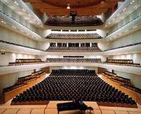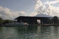 Otro de los elementos fundamentales de esta grabación suprema es la sala de conciertos donde se realizaron estas jornadas. La construyó Jean Nouvel, quien obedeció las instrucciones de sus contratantes, quienes le pagaron por una sala de conciertos que semejara un barco atracado a orillas del lago. Una vez dentro, uno se percata que está en el vientre de un violín, inclusive la madera que utilizó Nouvel para los interiores es la misma que se utiliza para construir violines, y bien sabemos que las salas de conciertos son en realidad instrumentos musicales, que se afinan con el tiempo, como sucede con nuestra Sala Nezahualcóyotl, que se construyó siguiendo el modelo de la casa de la Filarmónica de Berlín, el cual lleva a su perfección Nouvel en su actual proyecto, una sala de conciertos en París, con el público rodeando a los músicos y cuya maqueta interior mostramos en la foto de aquí abajo, mientras que en la del centro está el “barco” que pidieron los banqueros suizos y a la izquierda el violín que les hizo el maestro.
