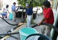 Vecinos de la colonia Valle del Sur, de la delegación Iztapalapa, llenan con agua cubetas y cisternas, tras la reducción del suministro en la ciudad. Varias pipas de la demarcación se han dado a la tarea de surtir el líquido en la zona