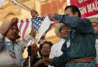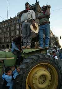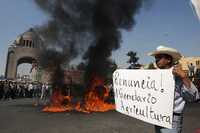 Durante la megamarcha, los campesinos quemaron un tractor en el Monumento de la Revolución y exigieron la renuncia del secretario de Agricultura, Alberto Cárdenas Jiménez
