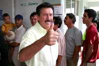 Chetumal, QR, 3 de febrero. Los aspirantes a la presidencia municipal de Cancún, Gregorio Greg González y Víctor Viveros Salazar, de las coaliciones encabezadas por el PRD y el PRI, respectivamente, se declararon ganadores de la elección esta noche.