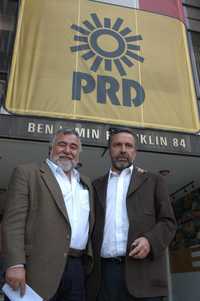 Alejandro Encinas, Alfonso Ramírez Cuéllar (arriba), Jesús Zambrano y Jesús Ortega al salir ayer de la sede perredista