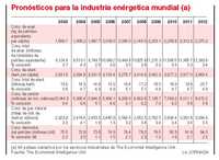 En el contexto general, la demanda de crudo, la principal materia energética que se comercializa a escala mundial, crecerá a un paso más lento (+2.3%) que otros combustibles fósiles, en especial el carbón (+6%). Pero en el mercado internacional del petróleo permanecerá el frágil equilibrio entre oferta y demanda. Es probable que la nueva gama de precios más altos, establecidos durante la segunda mitad de 2007, se sostenga durante 2008; no así los altos niveles (por arriba de 100 dólares) que se registraron a principios de año. EIU pronostica un precio promedio para el barril de referencia en Europa, el Brent del Mar del Norte, de 79 dólares por barril (d/b) en 2008, en comparación con un promedio de 73.28 d/b durante 2007.