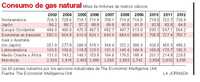 La demanda del gas natural en los 60 países cubiertos por los servicios industriales de EIU ha crecido 9.5% en los cuatro años anteriores y ese ritmo se acelerará durante los próximos cinco años, impulsado en gran parte por la demanda de India, el resto de Asia y Oriente Medio. Ante un control de emisiones de carbón que gana adeptos y petroprecios que permanecen al alza, la sustitución de gas natural en la generación de electricidad y calefacción gana velocidad, en particular en India y China.